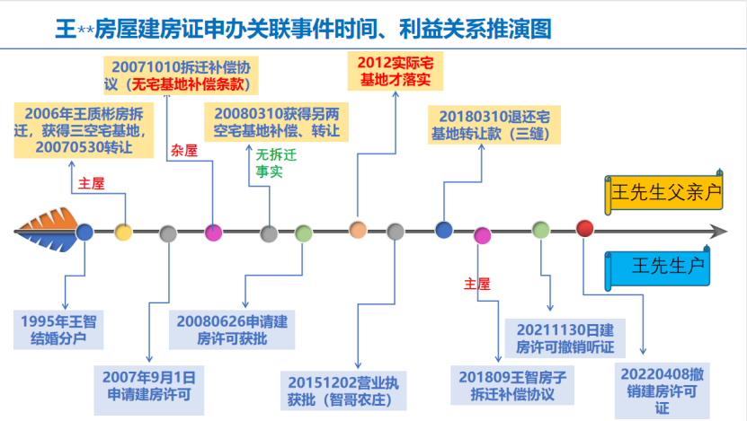 经过对案件深入分析,律师意见如下: 1、行政机关陈述撤消建房许可的事实不存在: a、涉案拆迁房系王先生名下唯一住房; b、原王先生父亲所有权的房屋拆迁及事项的处置,不影响作为独立户王先生个人的权益; c、建房许可证办理过程中王先生未隐瞒任何事实。 2、行政主体在办证审查中应当履行的法定职责,并承担责任: 公民在申办建房许可时,行政单位作为审查部门应该尽到审查的义务,因行政单位的过失导至证件办理之后,因涉及到公民的重大利益(本案房屋已建成,且又经征地拆迁拆除),行政单位无权撤消。 3、本案许可撤销法律适用错误: 本案长沙县人民政府作出的长县许撤销***号《撤销行政许可决定书》,被诉行政行为适用的主要法律依据是《中华人民共和国行政许可法》第六十九条第五款,但该条共四款,并无第五款,行政行为撤销的法律依据不存在。 本案经长沙市中级人民法院审理,于2023年2月2号作出2022湘01行初270号判决,撤销长县许撤销***号《撤销行政许可决定书》 。 1、被诉行政行为认定王先生采取欺骗手段取得案涉行政许可,但长沙县人民政府提交的证据只能用来证明王先生不符合准予案涉行政许可的规定,不能证明王先生系用欺骗的手段获取。 2、长沙县人民政府作出的长县许撤销***号《撤销行政许可决定书》,被诉行政行为适用的主要法律依据是《中华人民共和国行政许可法》第六十九条第五款,但该条共四款,并无第五款,故被诉行政行为适用法律错误。