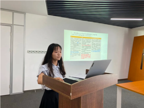 实习律师阳露正在分享《民法典对公司法司法解释修订的影响》