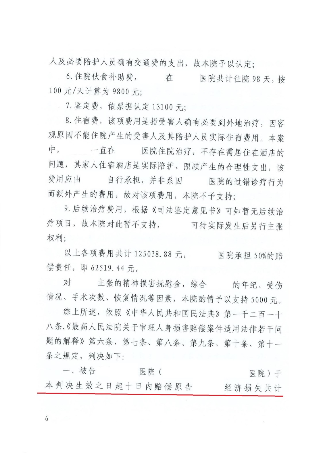 两次手术仍未康复 鉴定医院承担50%责任 获赔6.7万元