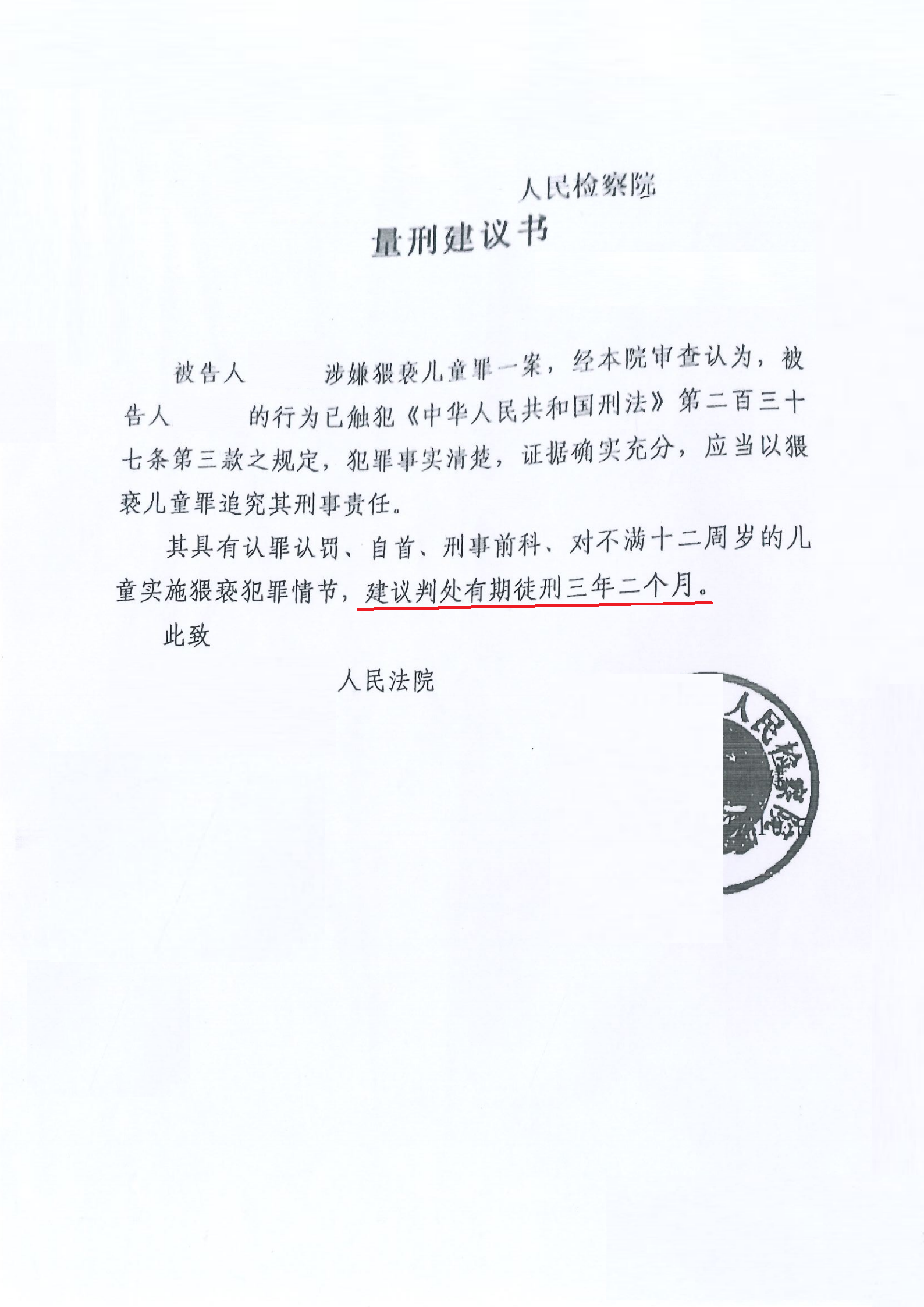 律师发现从重情节 52岁男子猥亵8岁女童 检察院量3年法院判5年