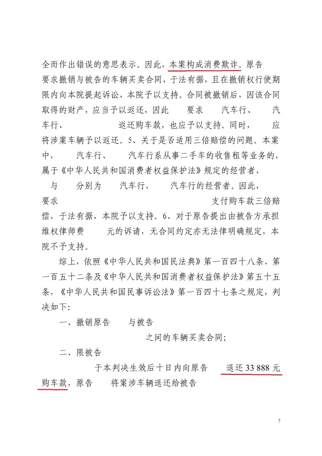 买到泡水二手车确认消费欺诈 成功退一赔三